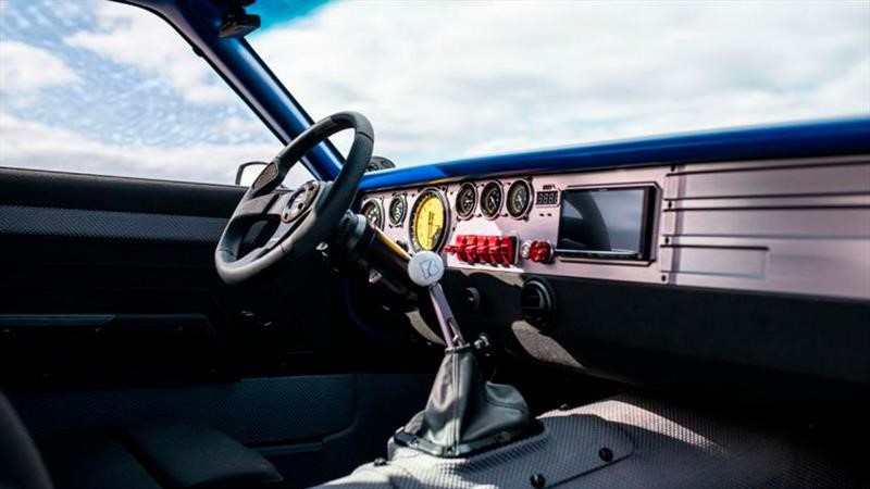 Puertas adentro nos encontramos con asientos deportivos Recaro, una columna de dirección Ididit, un moderno tablero análogo fabricado por Classic Instruments y sistema de aire acondicionado fabricado por Vintage Air Gen IV Magnum, como notamos el interior tiene ese ambiente clásico, pero combina el uso de la tecnología para conservar la parte “vintage” del vehículo.