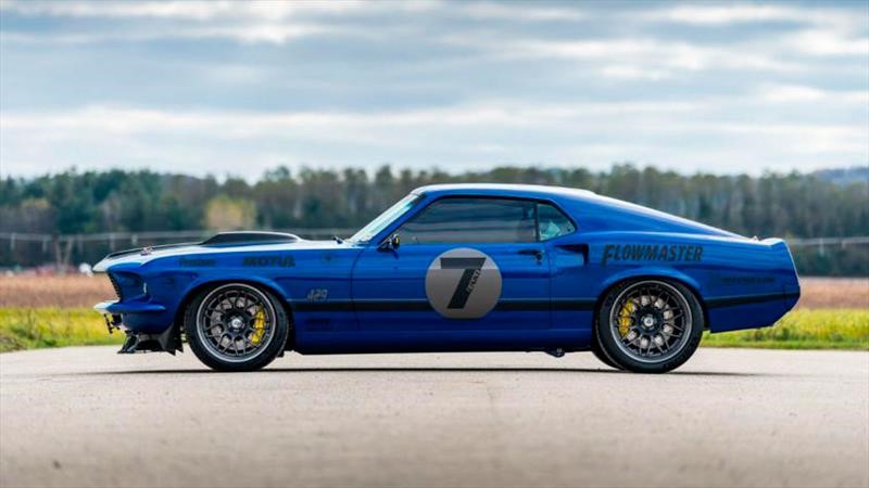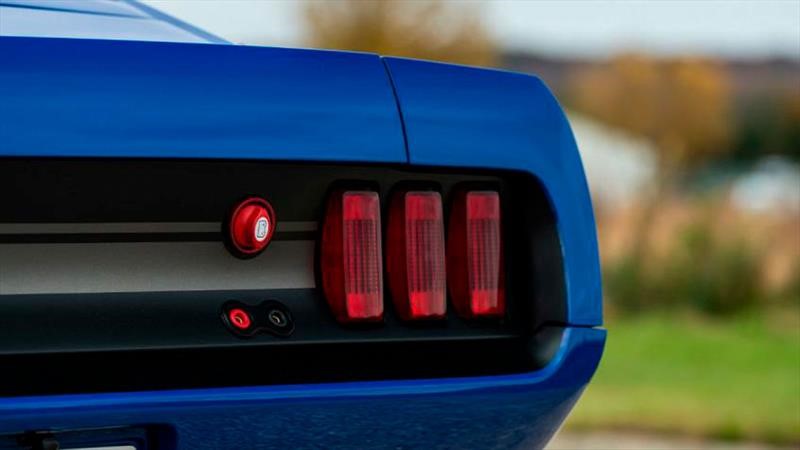 La decoración del Mach 1 está inspirada en las carreras, vistiendo un traje azul rey con detalles de vinil en color negro, aquí lo que destaca es la línea que recorre todo el cofre, dos franjas horizontales que detallan el lateral y el gran número 7, emulando a los coches de competición. Los neumáticos están a cargo de unos Michelin Pilot Sport 4S con una medida 295/35 R19 en la parte delantera, mientras que en la parte trasera el calzado es de talla 345/30 R20.