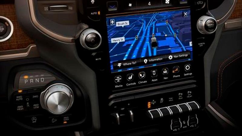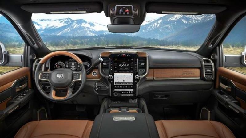 La RAM 1500 Mild-Hybrid Longhorn Bitono 2020, cuenta con un clúster digital de siete pulgadas con pantalla de alta definición y gráficos en 3D, un sistema de info-entretenimiento Uconnect 4C con pantalla de 12 pulgadas dividida, que permite utilizar dos aplicaciones al mismo tiempo, cámara de 360 grados, quemacocos y un sistema de audio premium firmado por Harman Kardon de 19 bocinas, que se introduce por primera vez en una pick up.