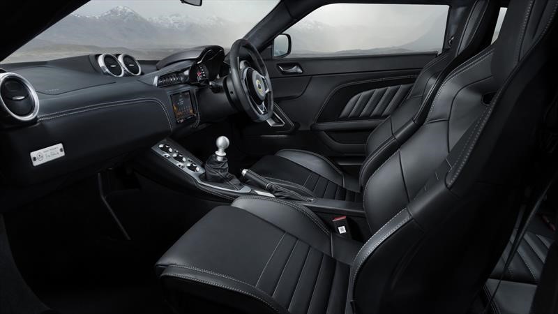 Esta elevación en el confort convierte al Lotus Evora GT410 en un automóvil para el día a día. Lo anterior se logra por medio de asientos deportivos Sparco, aire acondicionado, un sistema de info-entretenimiento, navegador, Apple CarPlay y cámara de reversa.