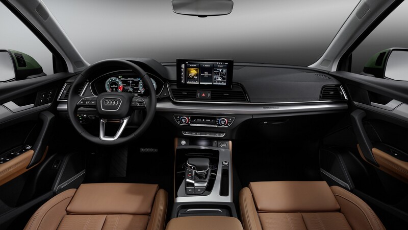 Adentro, los únicos cambios que presenta el Audi Q5 2021 es la actualización de la pantalla táctil de 10 pulgadas y del cuadro de instrumentos Audi Virtual cockpit plus, así como la eliminación del pulsador giratorio de control, mismo que ahora está ocupado por un espacio para el almacenamiento de objetos.