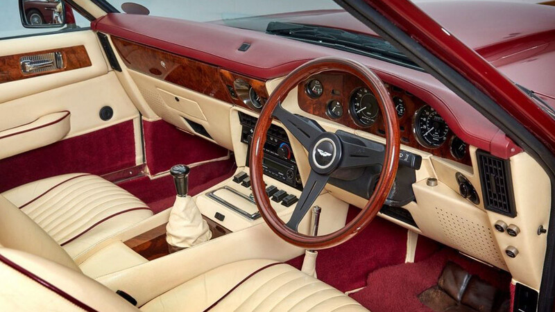 Este Aston Martin viste un traje rojo intenso y cuenta con un interior de piel en color beige. El motor está a cargo del tradicional V8 de 423 caballos de fuerza que logra el sprint de 0 a 100 km/h en tan solo 5.2 segundos y una máxima de 270 kilómetros por hora. Además cuenta con el motor X Pack, lo que significa mayor potencia, así como un sistema de escape más ruidoso. Nada mal para un vehículo de finales de los ochenta ¿no crees?