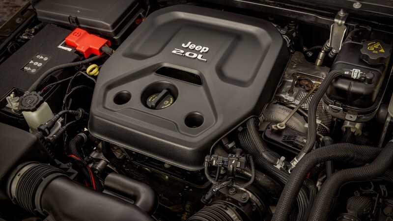 - Al ser un Wrangler Trail Rated, equipa ejes solidos delanteros y traseros, una caja de transferencia de dos velocidades 4x4 permanente, una suspensión completamente articulada y capacidad de vadeo de 76 centímetros.