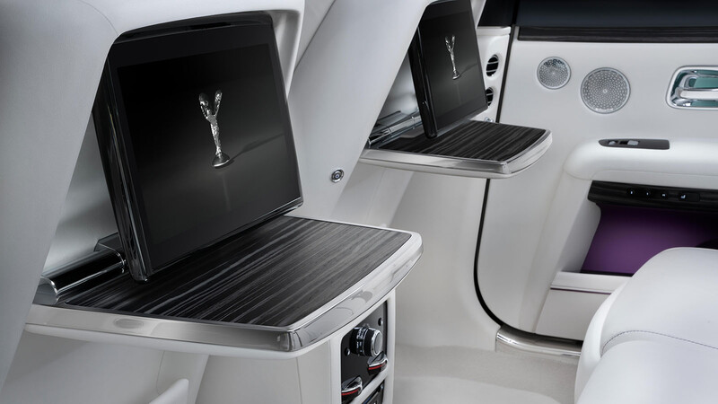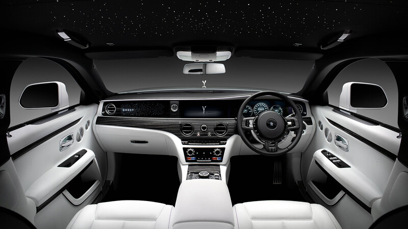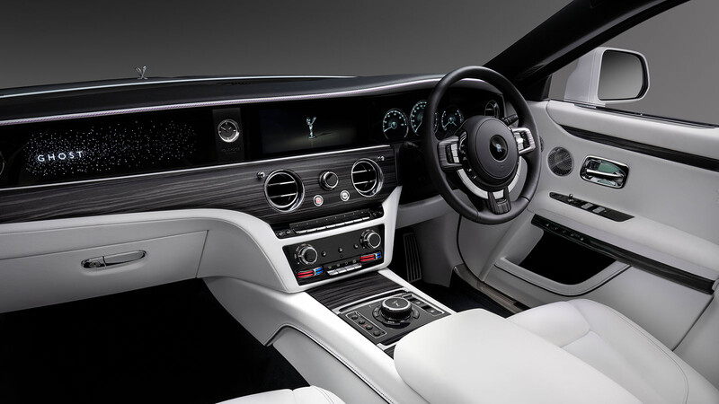 Tal como en el Phantom podemos disfrutar de una "Galería" decorada sobre la guantera, en el Ghost, esto ha sido cambiado por una fascia iluminada que lleva 152 diodos LED que imitan el efecto del techo y que decoran parte de la consola principal.