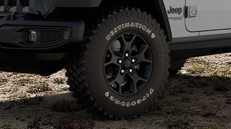 - El calzado está a cargo de unos rines Moab de 17 pulgadas en color negro montados sobre neumáticos Firestone Mud Terrain T/A de 32 pulgadas