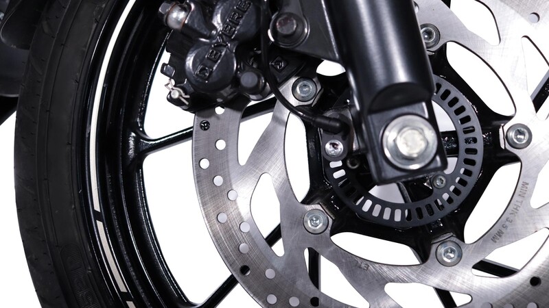 El sistema de frenos ABS viene firmado por Bosh, y si bien solo aplica a la rueda delantera es suficiente para mantener el control de la unidad en el caso de una frenada de pánico. El freno trasero también es de disco lo cual evita la fatiga y sobrecalentamiento en uso continuo.