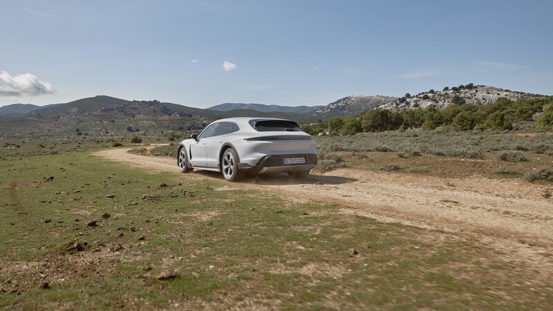 Básicamente, este Porsche Taycan Cross Turismo ofrece las mismas que prestaciones que el Taycan sedán, es decir, un sistema de propulsión eléctrico basado en una arquitectura de 800 volts, un chasis de alta tecnología, tracción en las cuatro ruedas y una suspensión neumática adaptativa.