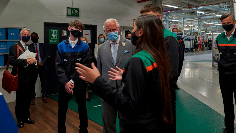 En su visita al complejo, el Príncipe Carlos conoció a detalle las instalaciones y tuvo la oportunidad de manejar un MINI eléctrico que salió de la línea de producción.