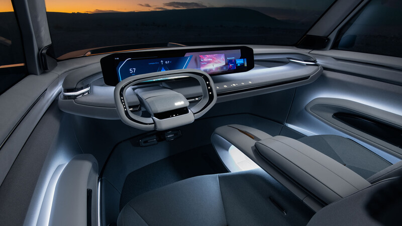 Las formas son rudas, cuadradas y angulosas, con un claro mensaje de que esta SUV eléctrica de 3 filas de asientos está lista para hacer incursiones fuera del camino.