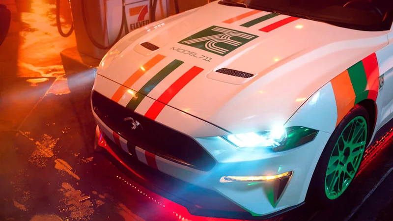 La reconocida cadena de establecimientos estadounidense 7-Eleven en colaboración la firma aftermarket Galpin Auto Sports, modificaron un Ford Mustang para que tuviera toda la apariencia temática de las tiendas 7-Eleven y lo denominaron Model 711.