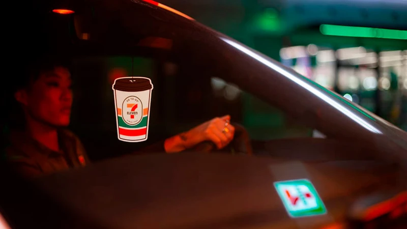 - Tiene un aromatizante con forma de vaso de café de 7-Eleven, que huele al café que vende la tienda bajo la marca OG To Go.
