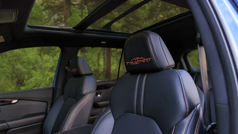 Claro que la gran novedad es la versión TrailSport, orientada a familias que gustan de la aventura. Este paquete no solo es estético, sino que también es funcional, cosa de poder entregarle al Pilot 2023 mejores herramientas para enfrentar caminos rotos o blandos, pendientes y baches. Estéticamente se diferencia por llantas de 18" con neumáticos All Terrain, placas protectoras para el cárter, transmisión y estanque de combustible, ganchos de arrastre, logos especiales y un color "azul cielo difuso" único para esta variante. También tiene elementos en color negro brillante como las manillas en las puertas.\
