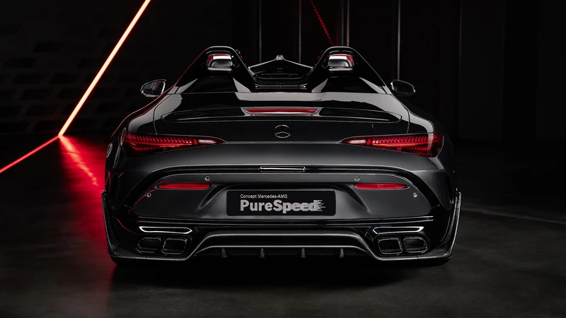 Para el PureSpeed se tomó como base la plataforma del AMG SL, lo que redujo el trabajo de reingeniería, pues ese modelo es ya un biplaza convertible con un poderoso motor delantero, así que gran parte de la tarea ya estaba hecha.