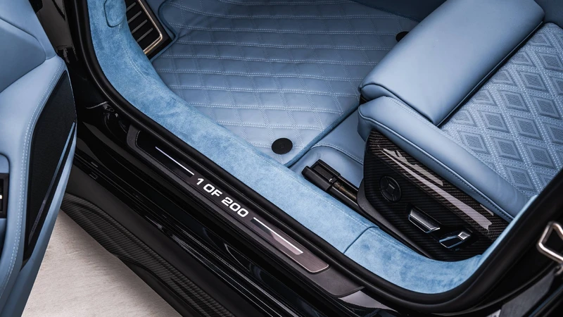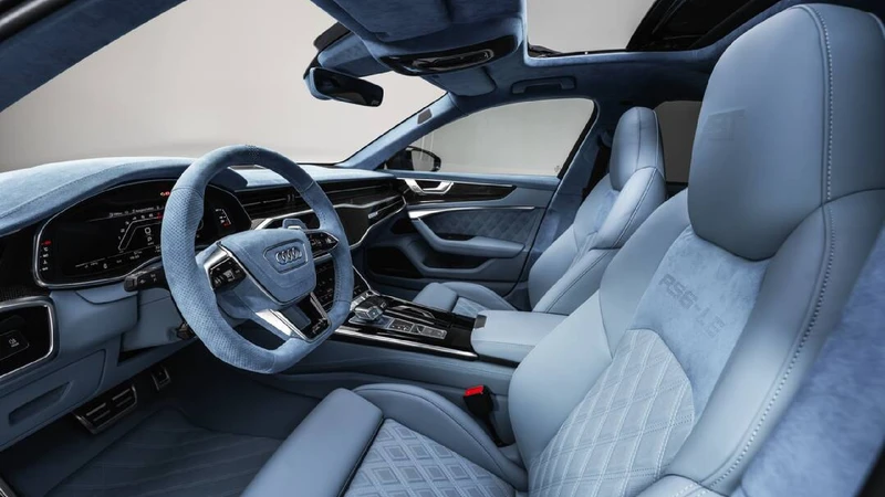 En las imágenes puedes apreciar el interior del RS6-LE que cuenta con tapicería de cuero y Alcantara en azul para el volante y los paneles de las puertas, mientras que la cajuela está vestida en cuero y el suelo del mismo en el mismo material, pero perforado, al igual que el centro del revestimiento del techo.
