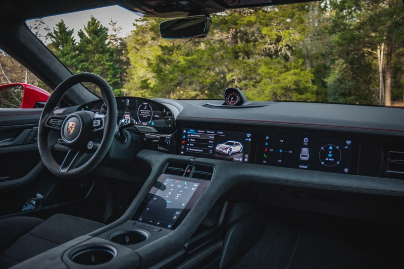 El interior del Porsche Taycan 2025 se mantiene prácticamente sin cambio alguno, solo lleva algunas mejoras puntuales que nos facilitan el día y su operación. A grandes rasgos la interfaz del sistema de infoentretenimiento se refina con mejores animaciones, menús más sencillos y ahora la capacidad de poder ver contenido en streaming cuando el auto está detenido.