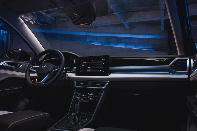 Por dentro Taos nos dejó claro desde inicio que su enfoque estaba en darnos más equipo y espacio. Por lo mismo es que la parte superior del tablero se sigue dominando con un plástico rígido en vez de materiales suaves. De hecho, los materiales suaves se colocan como un inserto en la parte media, que además se complementan con un poco de iluminación ambiental.