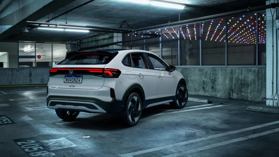 Para poder diferenciarse del resto de la gama Nivus GTS lleva una parrilla más grande, emblema GTS a un costado del emblema de la marca y una línea de color rojo en la zona baja de la parrilla. Los rines son de 18” y con un diseño que nos recuerdan ligeramente a los vistos en productos como el ID.4. Además cuenta con taloneras, spoiler y carcazas de espejos en color negro. Los emblemas GTS, también aparecen en los costados del auto y la parte trasera.