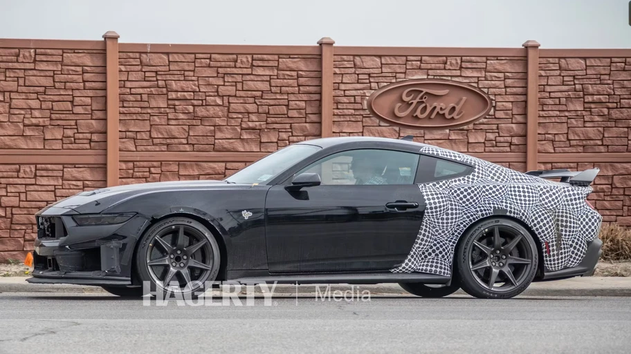 Desde 1967, el Shelby GT500 se ha levantado como el Mustang más capaz de la gama (además del más espectacular visualmente), y hace unos días, la página especializada Hegerty publicó unas imágenes de la mula de desarrollo de este musculoso deportivo (tomando como base la variante Dark Horse), que se espera llegue al mercado en 2026.