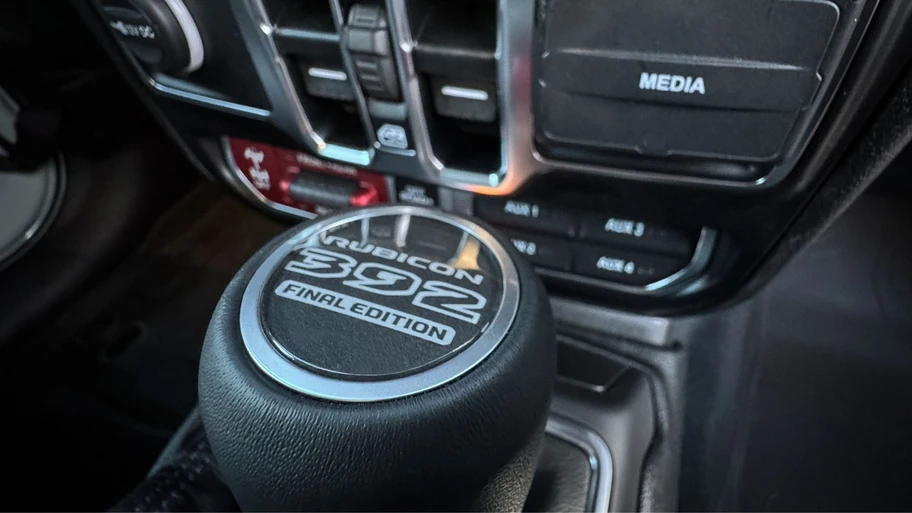 En el exterior, el Rubicon 392 Final Edition se distingue por detalles exclusivos en color bronce, como los rines beadlock de 17 pulgadas y los emblemas “Final Edition” en el cofre y las salpicaderas. También incluye de serie un winch Warn con capacidad de 8,000 libras, útil para rescates en situaciones fuera del asfalto.