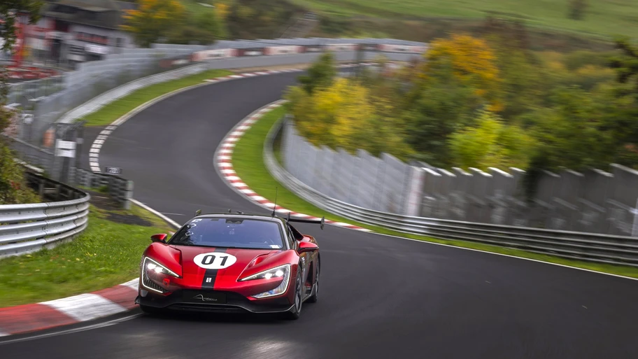 Hace unos días este coupé, de cuatro motores y más de 3,000 hp, completó los 20.832 kilómetros del Nördschleife en 6:59.157 minutos, siendo así el primer vehículo 100% eléctrico de producción que baja los 7:00 minutos y rompiendo la anterior marca por más de 5.0 segundos.