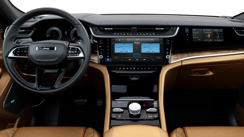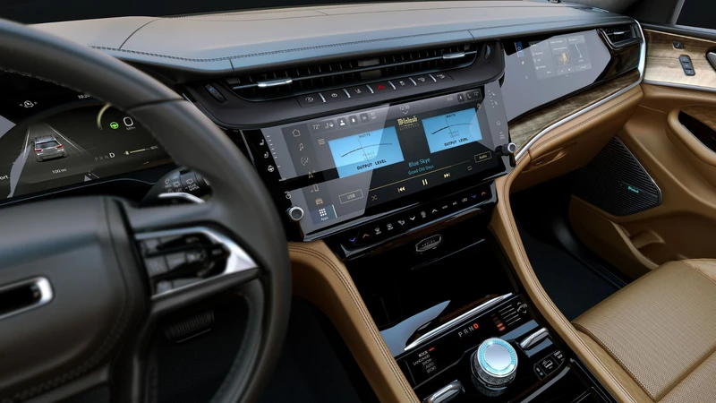 En materia de diseño, el Grand Cherokee 2026 se muestra como una evolución sobre la quinta generación. Es así, que incorpora una parrilla de siete barras revisada, nuevas luces LED delanteras y traseras, y tres nuevos colores: Steel Blue, Copper Shino y Fathom Blue. El interior también recibe una actualización importante, con una pantalla central de 12.3 pulgadas, una segunda de 10.25 pulgadas para el pasajero, sistema de sonido McIntosh de 19 bocinas y asistente de conducción activa Active Driving Assist.