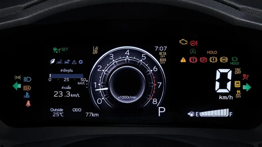 El sistema se completa con un motor generador MG1, encargado de poner en marcha el propulsor a combustión y de recargar la batería de ion-litio de 4.3 A-h, ubicada debajo de los asientos traseros para mantener un centro de gravedad bajo. Con esta configuración, se espera un rendimiento superior a 29 km/l, de acuerdo con cifras del modelo tailandés.