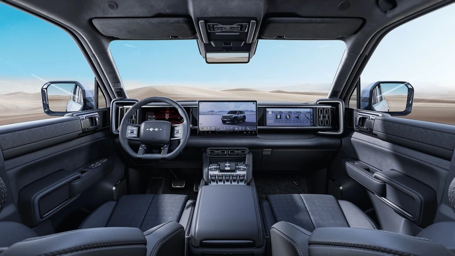 Adicional a ello, integra un sistema de suspensión neumática DiSus-A (la misma que hace que el Yangwang U9 brinque y pueda bailar) con distintas configuraciones de rigidez e, incluso, una programación que le permite elevarse 15 centímetros extra, dejando en la posición más alta una profundidad de vadeo en agua de 79 centímetros.