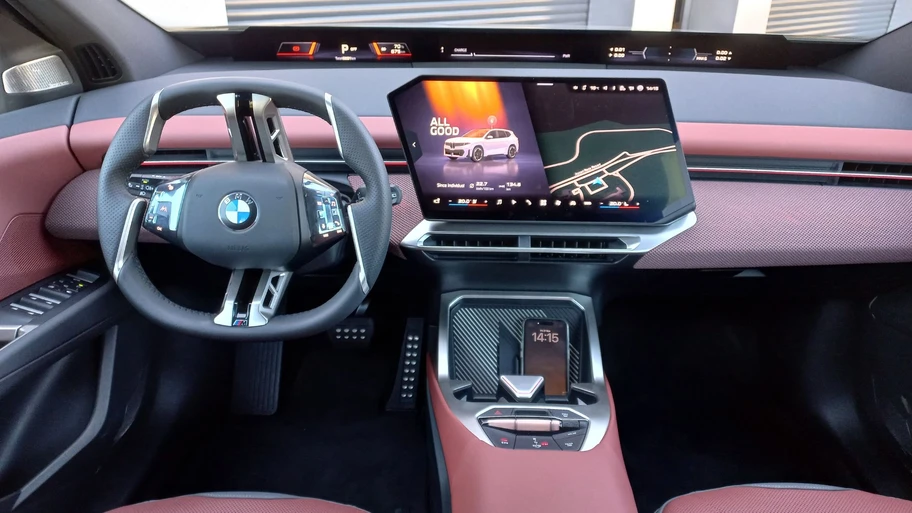 En fin, mucha de la sensación deportiva del iX3 se debe a algunos factores importantes. La primera es que, al igual que algunos rivales chinos, la batería forma parte del chasis, por lo que además de aportar mayor rigidez, el centro de gravedad queda muy abajo. Además, tanto el motor eléctrico delantero como trasero, están ligeramente por detrás de sus respectivos ejes, por lo que el peso, está mayormente distribuido en la parte media.