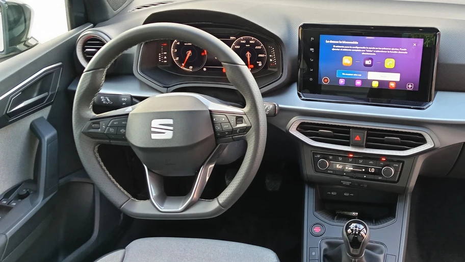 Al interior, el Ibiza integra cuadro de instrumentos digital de 8 pulgadas en Style y el Digital Cockpit de 10 pulgadas en FR. La pantalla táctil central es de 8.2 pulgadas en Style y de 9.2 pulgadas en FR, ambas compatibles con Full Link Wired & Wireless. También dispone de puertos USB Tipo C, Bluetooth para telefonía y audio, seis bocinas y computadora de viaje.