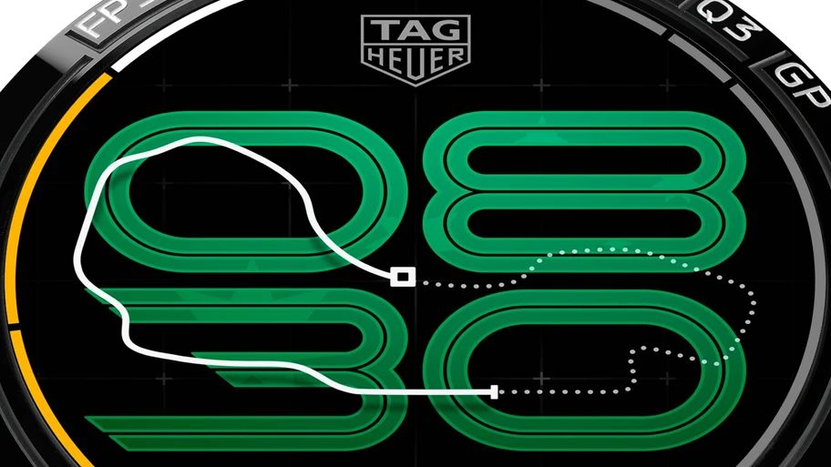 Esta pieza tiene cargados gráficos de pistas, banderas y otros datos de cada una de las 24 carreras del calendario, mismos que se desplegarán conforme vaya avanzando la temporada, para que nunca pierdas la emoción de esperar cada Gran Premio. También, una línea va marcando cada sesión que se realiza, utilizando los indicadores del bisel, donde están colocadas las 3 Prácticas Libres, la Calificación (con las Q1, Q2 y Q3) y la Carrera.