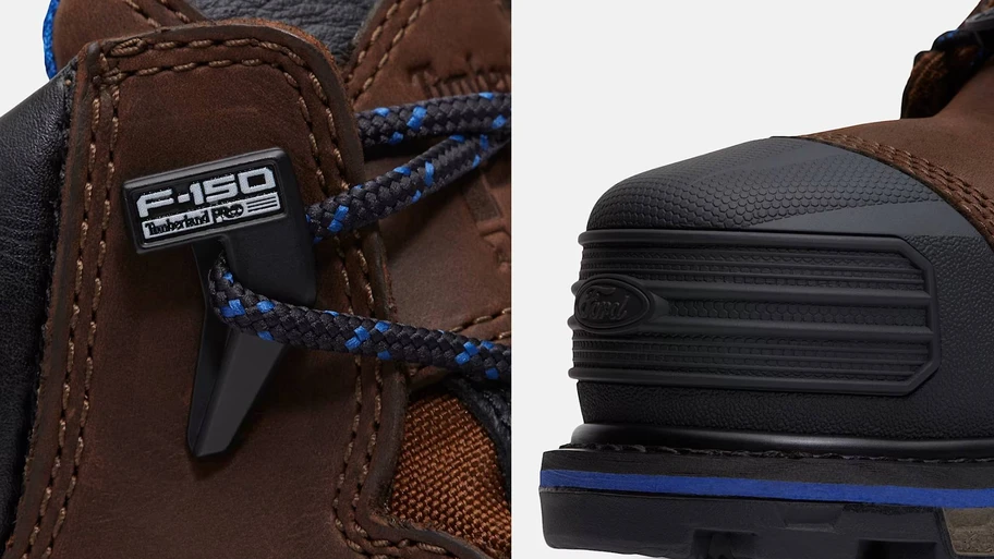 Los detalles especiales vienen en la punta y el talón de este calzado. Adelante encontramos que la protección de goma de los dedos tiene impresa la imagen de la parrilla que porta la actual generación de la F-150, mientras que, en la parte trasera, el protector del talón, también replica una parte de esta camioneta, específicamente la tapa de la batea, con el logotipo F-150.